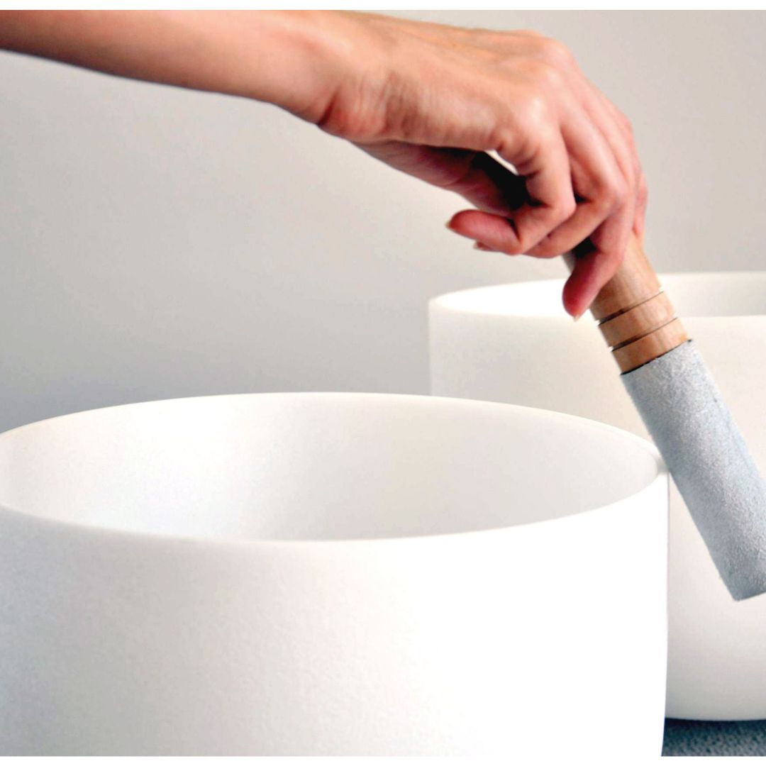 El cuenco de cuarzo, conocido por su capacidad para producir vibraciones sonoras puras y armoniosas, se utiliza a menudo en prácticas de meditación y terapia de sonido. Estas vibraciones pueden ayudar a equilibrar los chakras, reducir el estrés y la ansiedad, y promover un estado de relajación profunda.
